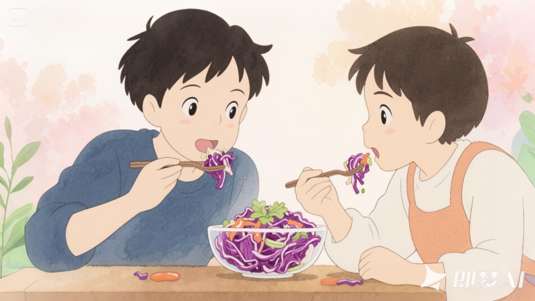 生吃凉拌:花青素对热敏感,长时间高温加热会破坏其结构。将紫甘蓝切丝后,搭配胡萝卜、黄瓜、坚果,淋上橄榄油和醋,就是一道清爽的抗氧化沙拉。