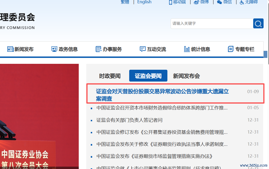 1月9日,中国证监会公告,对天普股份股票交易异常波动公告涉嫌重大遗漏立案调查。这一公告发布在中国证监会官网“证监会要闻”头条,足以显示官方对这一事件的重视。今天天普股份复牌后,股价毫无悬念封于跌停板。