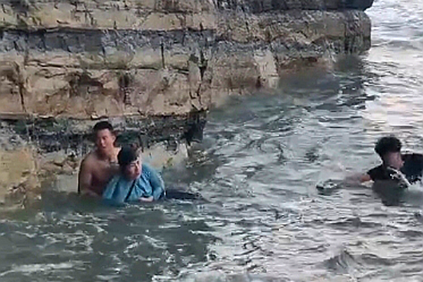 此时,张小龙见游客情况危急,立即向海中跑去,由于岸边湿滑,张小龙摔了一跤。“当时我把所有精力和注意力都放在放在救人身上了,然后走得比较快,所以没太在意滑了一跤。”跳入海中后,张小龙立即向被困游客游去,当靠近游客时,他从游客后方一把抓住他的衣领。随后一手游泳,一手把游客往岸边拽。