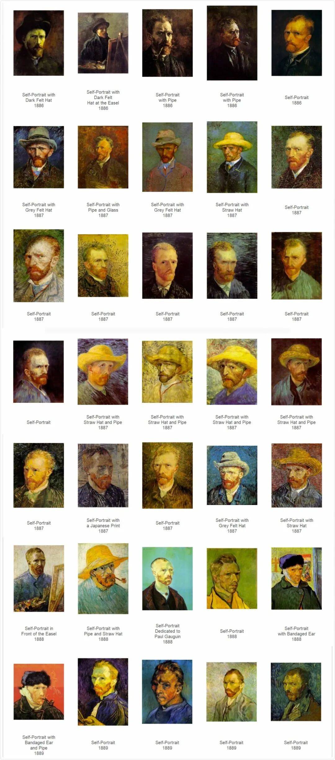 梵高的自画像,他的自画像中,这颗炙热心灵的主人却总是严肃而哀伤地盯着某一个方向,没有一丝笑容。