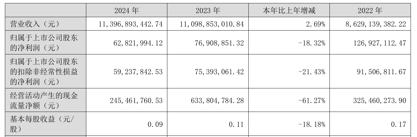 4月25日晚间,齐心集团公告称,公司2024年实现营收113.97亿元,同比增长2.69%;归属于上市公司股东的净利润6282.20万元,同比减少18.32%。
